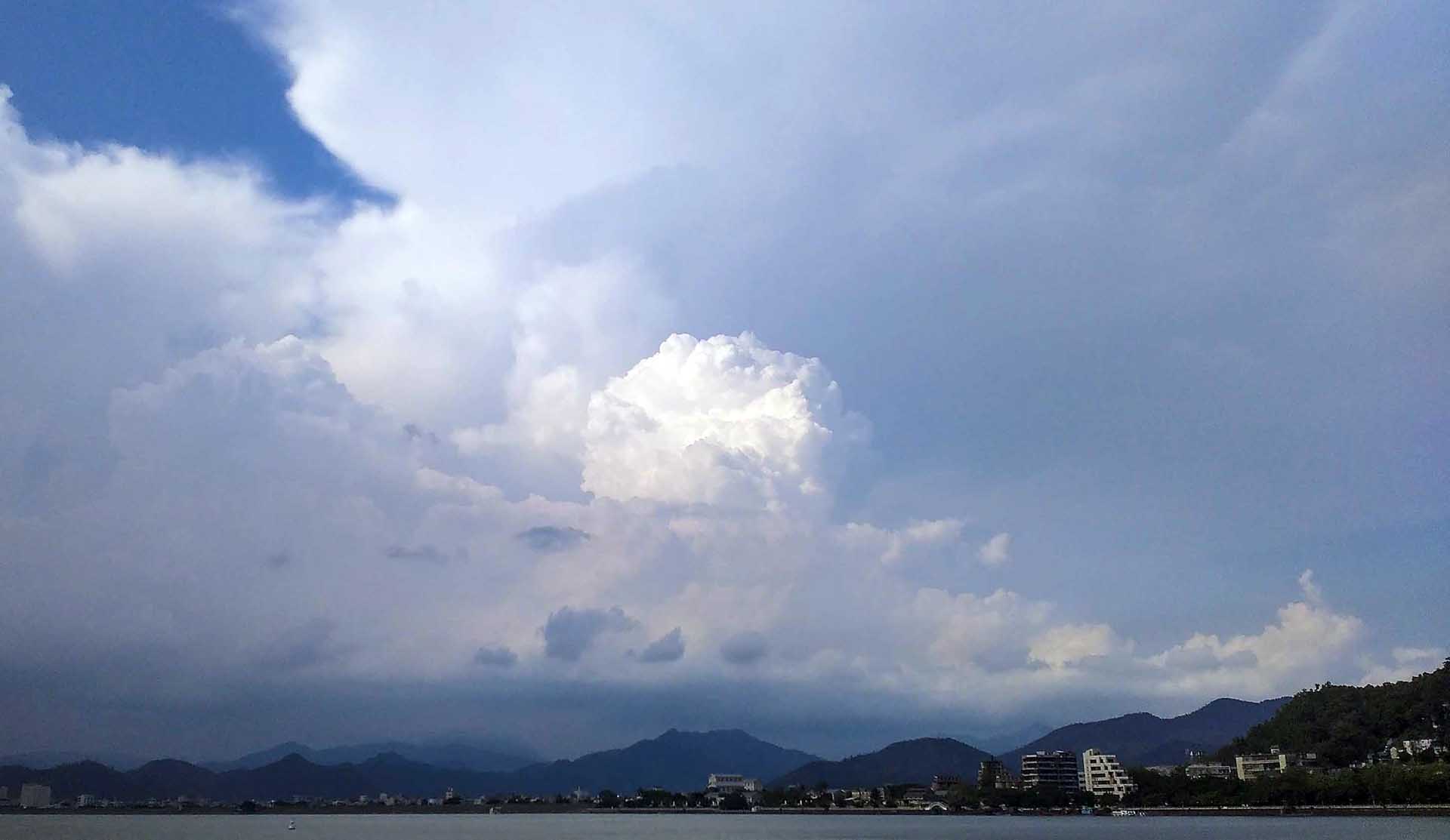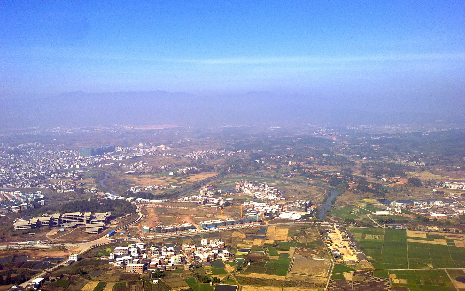 清晨一早登冠豸山,俯瞰连城县城,余雾未尽